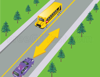 19 - When do you stop for school buses if there is a median?
