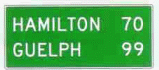 3. Indicates by distance shown that Guelph is before Hamilton