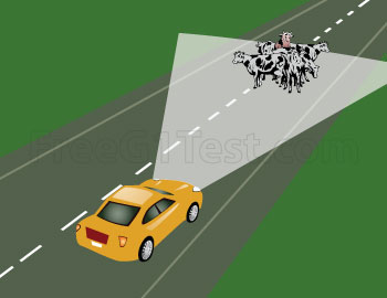 Slow down while driving at night to ensure you can see ahead far enough to stop appropriately