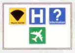 1. Indicates there are police, a hospital, an information desk and an airport in one building