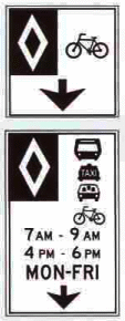 2. Lanes are for 3 or more passengers in the vehicles shown, plus bicycles, during the days and times shown or all the time (depending on the sign)